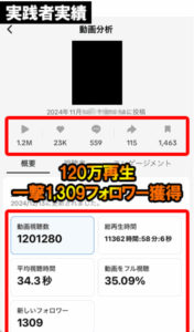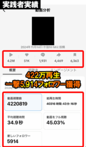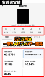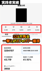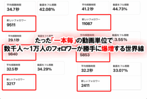 つまり、作業ハードルがとても低いのに、「1本1本の動画からフォロワーが数千〜1万人単位で増える」可能性があるというのが最大の魅力なんです。