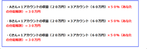 このように自分のアカウント以外からも30万円+30万円+30万円=90万円と