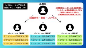 自分のアカウントを複数運用して広告収益を稼ぐだけでなく地に足付けてまず0⇒1を達成後にさらなる次のフェーズに持っていくことも可能となるのです。