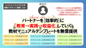 もちろんマニュアルの中でレベシェアの運営の注意点、パートナーとの報酬割合の設定、パートナーへの教育・実践までのフローについても解説されているので迷うことなく進めていけます。